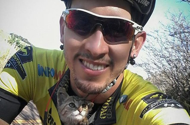Dvaadvacetiletý Vitor Fonseca si při tréninkové vyjížďce u silnice všiml zatoulaného kotěte, kterému neváhal pomoci! A to dost originálním způsobem - strčil si ho za trikot.