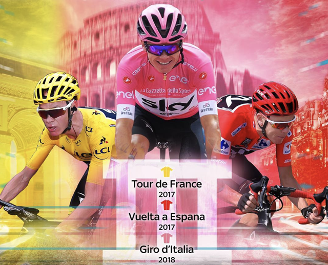 Třiatři​cetiletý Chris Froome vyhrál jako teprve třetí jezdec v historii všechny tři Grand Tour sezony v řadě za sebou, stalo se tak poprvé od roku 1983.