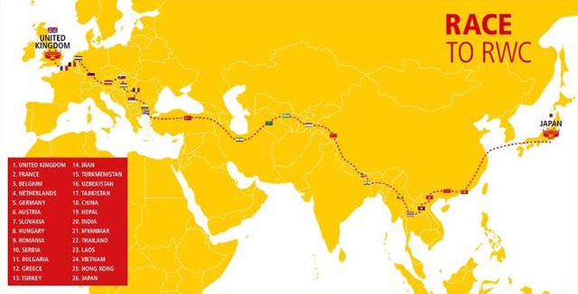 S sebou oba nadšenci povezou důležitý náklad - píšťalku pro úvodní zápas mezi domácím Japonskem a Ruskem. Dobrodružná akce má kromě globální reklamy pro rugby přinést i peníze do dětského fondu logistické firmy DHL, která celou akci zaštiťuje.