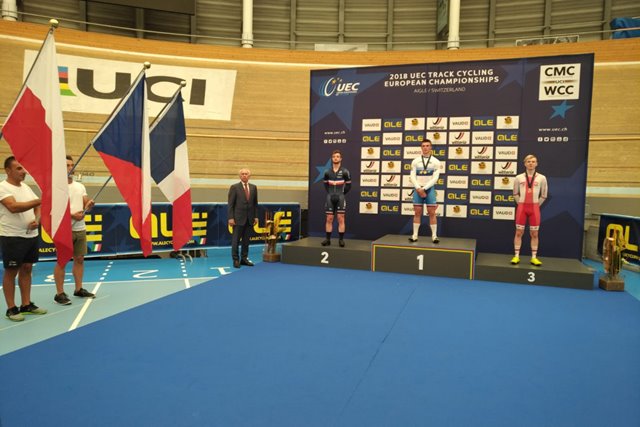Na mistrovství Evropy byl nejlepší v závodu na 1 km s pevným startem. Prostějovský talent v neolympijské disciplíně dosáhl čau 1:02,837 a druhého Titouana Renvoise z Francie porazil o zhruba desetinu sekundy. Navíc Jiří Luxík byl pátý. V úterý skončili oba čeští reprezentanti ještě s Davidem Grossmanem čtvrtí v týmovém sprintu.
