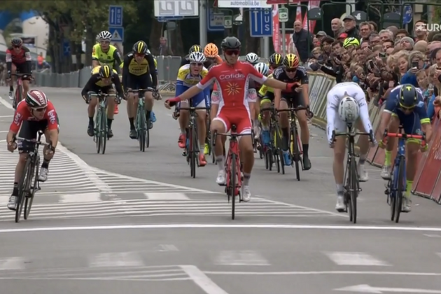 Velká radost přišla až tuto neděli, kdy vyhrál belgickou klasiku Tour de l'Eurométropole po trochu bizarním finiši, kdy třiadvacetiletý mladíček Anthony Turgis z Cofidisu zvedal ruce nad hlavu velmi předčasně a stihl ho předjet jak McLay tak Kenny Dehaes (Wanty-Groupe Gobert).