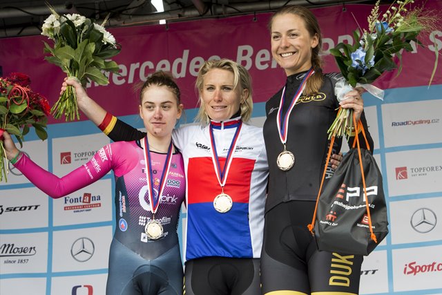 Pro Machačovou jde o premiérový titul ze silničního závodu s hromadným startem. Do něho v Plzni vyjela spolu s devíti týmovými kolegyněmi v ženské kategorii.
