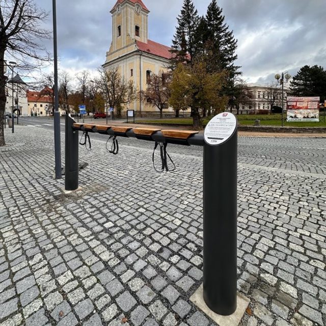 ● V městském parku u koupaliště, oblíbeném místě odpočinku i sportovních aktivit. Moderní řešení pro obyvatele i návštěvníky Atraktivní design stanic motivuje obyvatele k častějšímu používání. Díky odolné ocelové konstrukci mají dlouhou životnost a jsou vhodné jako součást městského mobiliáře pro veřejná prostranství.