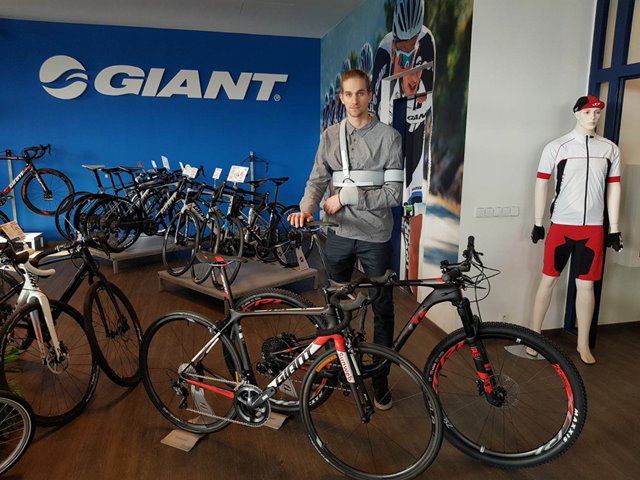 V tuto chvíli je Michal Malík dva týdny po operaci. Podstoupil plastiku vazů v levém rameni po ošklivém pádu na mistrovství ČR v cyklokrosu v Mladé Boleslavi.