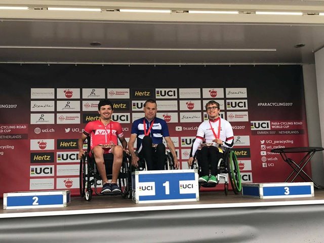 Nejlépe se dařilo handbikerovi Patriku Jahodovi, který vybojoval druhou příčku hned za finským závodníkem Polvim. Průběh závodu byl však velmi napínavý. Patrikův čas na prvním mezičase vůbec nenaznačoval, že bude jeho nositel na stupních vítězů, protože ukázal až průběžné šesté místo. Patrik se tím však nenechal vyvést z míry, postupně zvyšoval tempo a v cíli byl jeho čas druhý nejrychlejší. Třetí skončil Švýcar Früh.