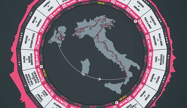 O osudu závodu pravděpodobně rozhodnou tři alpské etapy v závěrečném týdnu - jezdci se vyšplhají na Pinerolo, francouzský Risoul a Sant'Anna di Vinadio. Závěrečná etapa se pojede 29. května se startem v Cuneo a skončí se v Turíně.