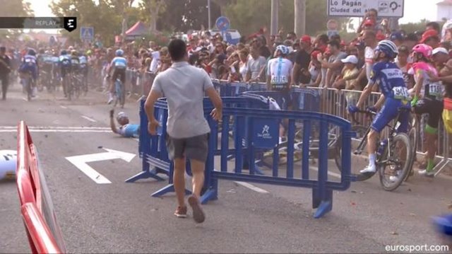 Po průjezdu cílem si jistě každý cyklista ulevý, že již nyní nemusí čelit nástrahám rychle jedoucího pelotonu, který by mohl způsobit ve chvilce nepozornosti pád. Na Vueltě tomu bylo jinak. Po průjezdu cílem klesal opodál vrtulník a nezabezpečené bariéry se staly překážkami pro dojíždějící jezdce.