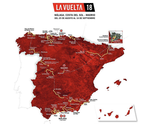 Třiasedmdesátý ročník Vuelty odstartuje 25. srpna a finišuje 16. září tradičním dojezdem v Madridu. Loni slavil velké vítězství Chris Froome (Sky). Bohužel, jak známo, platnost jeho titulu je kvůli excesu se salbutamolem nyní velkým otazníkem.