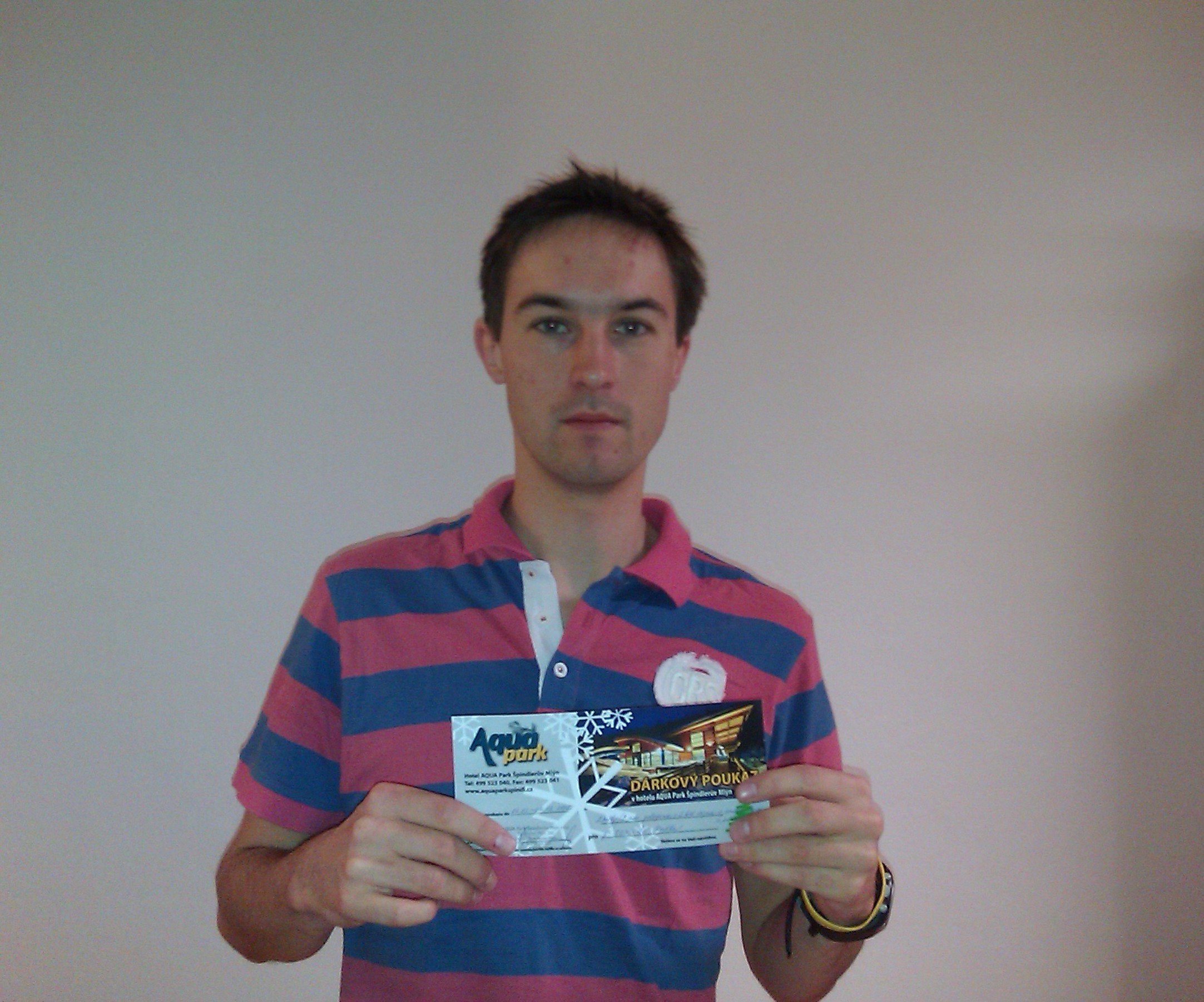 Výherce prvního kola soutěže "o víkendový pobyt v aquaparku" nám zaslal fotku s poukazem.