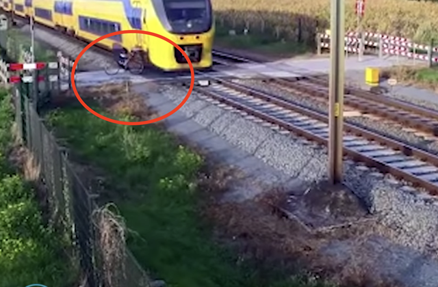Holandský cyklista unikl o vlásek srážce s rychle jedoucím vlakem, kterého si vůbec nevšiml.