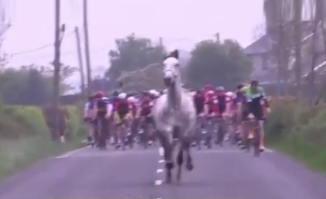 Neobvyklá situace ohrozila závod v severním Irsku, když vyplašený kůň vběhl před rozjetý peloton cyklistického závodu. Vše naštěstí dobře dopadlo a nikdo z jezdců se nezranil.