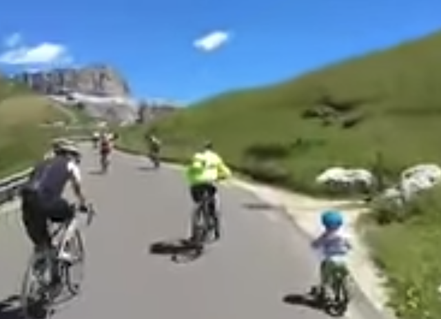 Další sportovní talent ze Žiliny udivuje svět! :) Ve šlépejích Petra Sagana (Bora-Hansgrohe) možná půjde malý Benjamin. Ten si na svém odrážedle až neuvěřitelnou frekvencí odrazů pohrával se sklonem silnice vedoucí do 2300 metrů nad mořem položeného Passo Sella. Řada cyklistů míjejících malého sportovce nemohla uvěřit vlastním očím...
